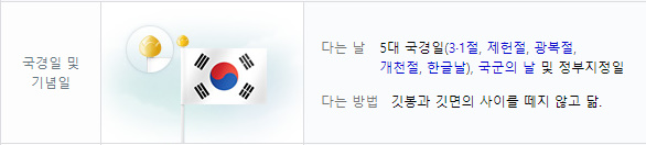 아래에서 더 자세한 태극기 게양법을 확인하실 수 있습니다.