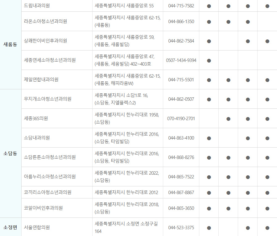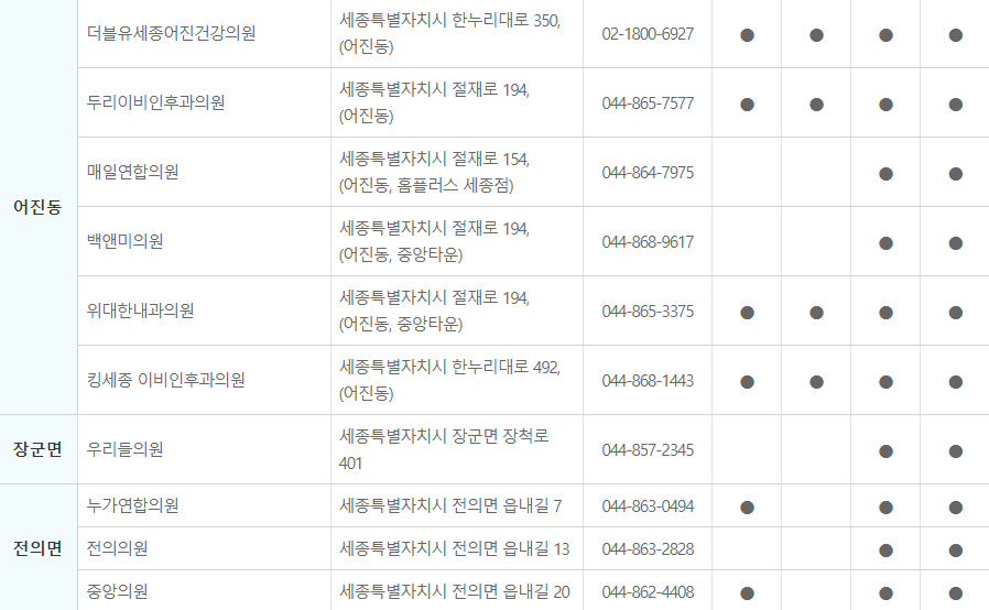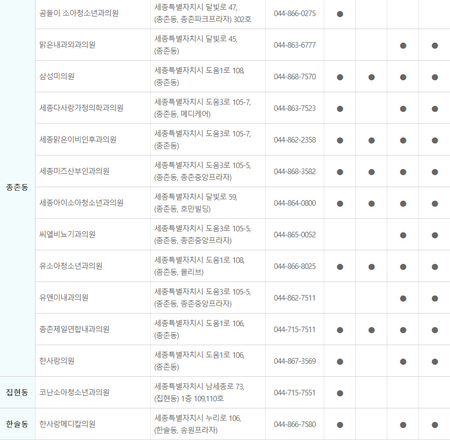 세종시 독감 예방접종 지정 병원 바로보기