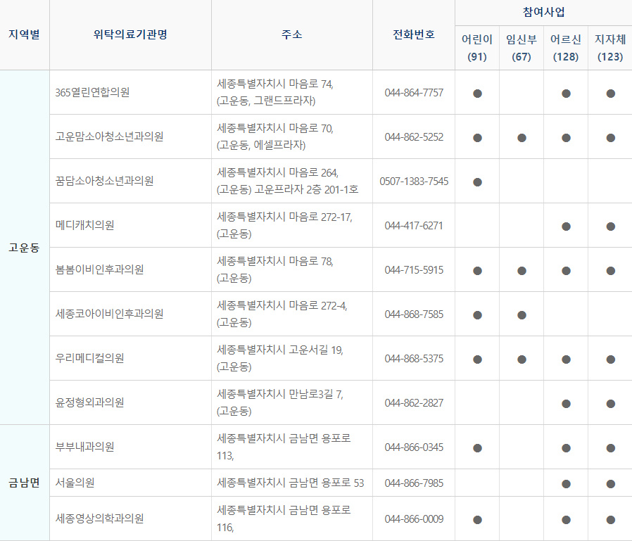 세종시 독감 예방접종 위탁의료기관 리스트