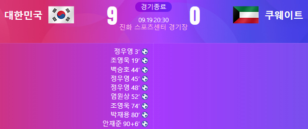 9월 19일 아시안게임 한국과 쿠웨이트 남자축구 경기 보셨는지요?