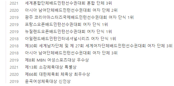 안세영 선수 프로필 및 수상내역