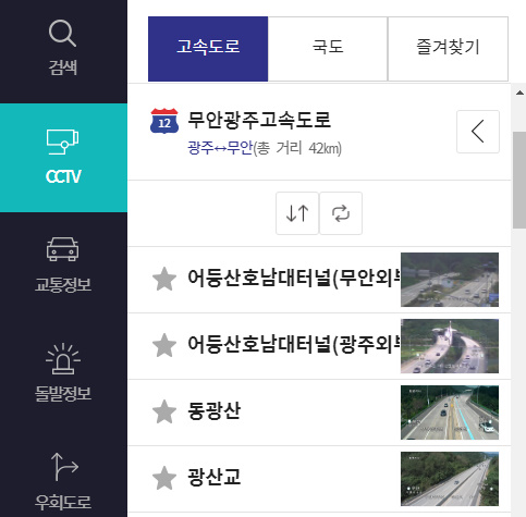 CCTV 확인 방법은 CCTV를 클릭 후 원하는 고속도로 또는 국도를 지정한 뒤에 오른쪽 상단에 CCTV 열기를 클릭하시면 됩니다.